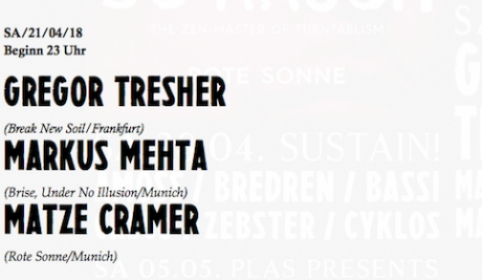 16.04.2018 It is always a highlight when I get to share the decks with good friends and world renown Frankfurt techno maniac Gregor Tresher. Fun times and full on, cutting edge electronic music guaranteed. The mighty Rote Sonne club in Munich and its massive sound system is just the perfect place to celebrate a party night like this in style. The one thing I am not looking forward to, is Sunday's hangover... Hehehe! Come join us on the dancefloor... Saturday, April 21st 23:00 Rote Sonne Club Maximilianspl. 5, 80333 München